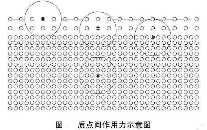 如果以質(zhì)點(diǎn)中心為圓心,10r0為半徑作一球面,顯然只有在這個(gè)球面內(nèi)的質(zhì)點(diǎn)才對(duì)位于球心上的質(zhì)點(diǎn)有作用力。熔體的表面層厚度等于質(zhì)點(diǎn)作用球半徑的一層,在表面層內(nèi)熔體質(zhì)點(diǎn)受力的情況跟熔體內(nèi)部的質(zhì)點(diǎn)的受力情況有所不同。由圖2可見(jiàn),位于熔體內(nèi)部的質(zhì)點(diǎn)A受到周?chē)鷮?duì)稱(chēng)分布的質(zhì)點(diǎn)的作用,其合力為0。熔體表面層質(zhì)點(diǎn)上下分布對(duì)稱(chēng)性被打破,處于表層內(nèi)的熔體質(zhì)點(diǎn)B、C和D都受到了一個(gè)指向熔體內(nèi)部的力的作用從而向熔體內(nèi)部移動(dòng),使得質(zhì)點(diǎn)間距離減小,引力轉(zhuǎn)化為斥力,最終到達(dá)平衡狀態(tài)。在平行熔體表面的方向,熔體表面層內(nèi)的質(zhì)點(diǎn)分布是均勻的,只是間距比較大,質(zhì)點(diǎn)間作用力表現(xiàn)為引力,這便是熔體的表面張力。由于表面張力的作用,質(zhì)點(diǎn)之間的距離減小,使得熔體表面積減小,而一定體積的熔體中球體的表面積最小,所以熔體表面有形成球面的趨勢(shì),但這種趨勢(shì)會(huì)受重力的影響而改變。重力是所有組成熔體的質(zhì)點(diǎn)所受的力的合力,而表面張力只是表面一層質(zhì)點(diǎn)間的引力,表面張力相對(duì)于重力而言微乎其微,所以對(duì)于大體積的熔體,重力作用遠(yuǎn)大于表面張力作用,液面呈現(xiàn)平面。對(duì)于小體積熔體來(lái)說(shuō),組成熔體總的質(zhì)點(diǎn)數(shù)較少,表面張力已接近重力,甚至超過(guò)重力,使得液面呈現(xiàn)弧形甚至球形。上述的釉滴實(shí)驗(yàn)可以證實(shí)這點(diǎn)。