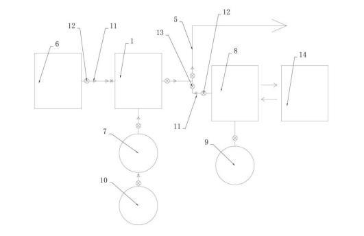 本發(fā)明的一種基于微納米氣泡的井口注氣裝置在使用時(shí),微納米氣泡在油層流動(dòng)過程中,可以改變油水界面張力,降低原油的粘度,增大油藏的滲透率,從而提高油水的相對(duì)滲透率,進(jìn)而提高原油的采收率;而加藥泵能夠?qū)ψ⑺⑷胨幰?,從而改善注水井管道、油氣田狀況,提高采油率;同時(shí)第二旋風(fēng)分離器能夠?qū)⒊叽巛^大的微納米氣泡分離出去,從而保證注入井下的微納米氣泡的尺寸,進(jìn)而確保驅(qū)油效果,提升采油率。