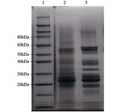 SDS-PAGE分析在NuPAGE 4%~12%Bis-Tris Mini Gel預(yù)制膠(Invitrogen,USA)上進行。在樣品中加入NuPAGE LDS sample Buffer和NuPAGE Reducing Agent(Invitrogen),70℃加熱10 min,短暫離心后上樣,每孔道上樣20μL,200 V恒電壓電泳。凝膠用考馬斯亮藍R-250染色。
