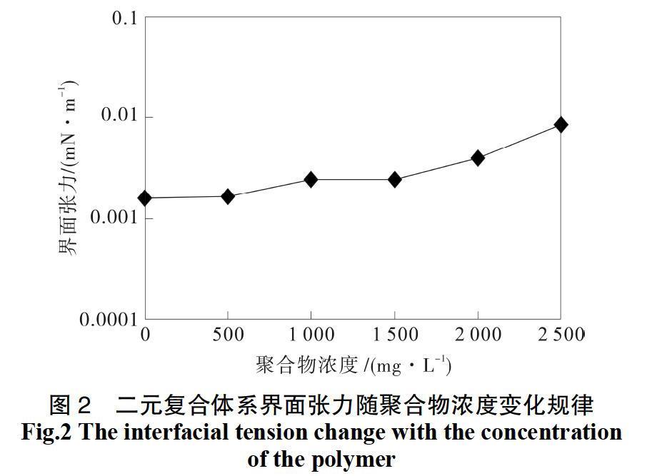 將無(wú)堿二元復(fù)合體系的界面張力隨聚合物濃度的變化規(guī)律繪制如圖2所示。