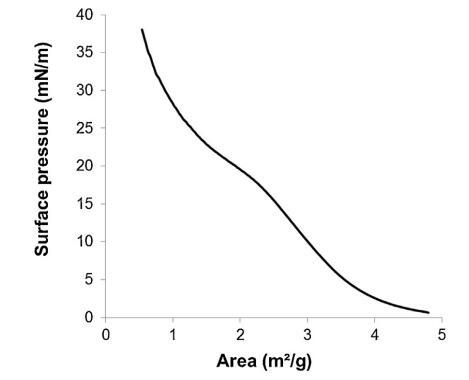 圖 3. 表面壓力-面積 (?-A) 等溫線形成于 通過(guò)傳播精漿形成空氣/緩沖液界面(n = 3,標(biāo)準(zhǔn)偏差 在 0-18.9 mN/m 范圍內(nèi)不超過(guò) 1.5 mN/m,在 1.2 mN/m 范圍內(nèi)不超過(guò) 18.9–38 mN/m)。