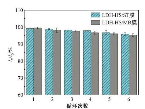 受這些啟發(fā),本研究考慮到LDH粉末的片間夾層結構容易變形、回收困難等缺點,預想能夠在分子水平上制備出行為可控的薄膜結構。目前關于LDH和染料分子自組裝的文章還鮮有報道。因此,本研究工作利用陰離子交換法和LB技術成功地在氣-液界面制備了一種新型有序的LDH-HS/染料自組裝復合多層膜。