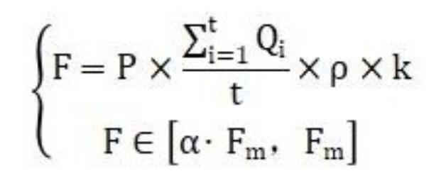 其中,F(xiàn)為高壓水流沖洗設備實際水流沖洗的沖擊力,Qi為高壓水流沖洗設備第i秒水流的流量,t為高壓水流沖洗設備預設的水流沖洗的時長,ρ為水的密度,k為預設定的閾值參數(shù),P為輸出功率可調(diào)的高壓水流沖洗設備的實際輸出功率,α為預設的抗壓閾值參數(shù)且其數(shù)值小于1,F(xiàn)m為新能源電池沖壓配件最大抗沖擊力值。