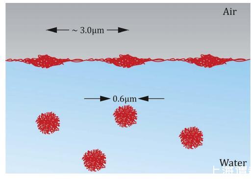 我們發(fā)現(xiàn)在非常低的密度下,表面壓力 測量值至少高出 5-6 個數(shù)量級 假設(shè)在這些密度下是非相互作用粒子的理想氣體,對表面壓力的預(yù)測。 Groot 和 Stoyanov13 做 由于沒有明確考慮這些粒子的變形 表面張力。 他們只是假設(shè)壓力 主要取決于膠體顆粒內(nèi)聚合物的微觀結(jié)構(gòu)和組成,并引入 新的長度尺度 deff 旨在反映顆粒微觀結(jié)構(gòu),并將壓力放大到實驗 值。 然而,意識到粒子擴散到一個大 在某種程度上,我們還可以看到測量的壓力反映了 顆粒的內(nèi)部彈性。 由于這是由 2D 給出的 交聯(lián)的密度,我們發(fā)現(xiàn)微觀長度也就不足為奇了。