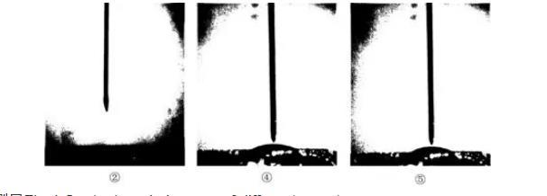 使用JGW-360A接觸角測(cè)定儀對(duì)表面活性劑溶液和3種礦石表面接觸角的測(cè)量;采用濕潤(rùn)性能較好的SDBS溶液配制成8種不同表面張力的水溶液,并測(cè)定出接觸角,如圖4所示(選取礦樣a不同表面張力②④⑤時(shí)接觸角測(cè)量示意圖)。