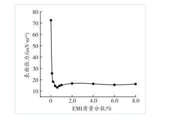 2.1 EMI質(zhì)量分數(shù)對表面張力的影響