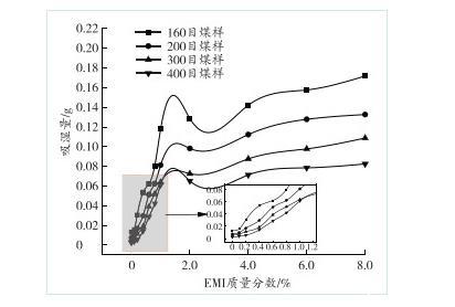 2.3 EMI質(zhì)量分數(shù)對煤塵吸濕性的影響