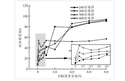 圖10煤樣板結硬度與溶液中EMI質(zhì)量分數(shù)的關系