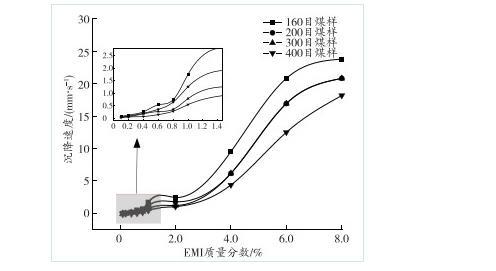 圖8煤塵沉降速度與EMI質(zhì)量分數(shù)的關系