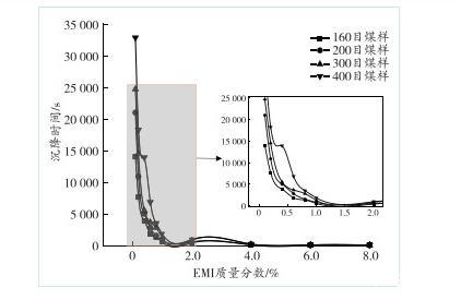 圖7煤塵沉降時間與EMI質(zhì)量分數(shù)的關系