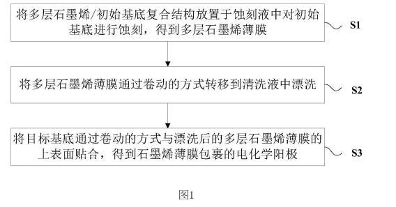 本實施例提供了一種基于石墨烯薄膜包裹的電化學(xué)陽極大規(guī)模制備方法,如圖1所示,包括以下步驟: