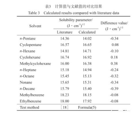 2.2淺色礦物油溶解度參數(shù)估算值的驗證