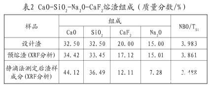 表2 CaO-SiO2-Na2O-CaF2熔渣組成(質(zhì)量分?jǐn)?shù)/%)