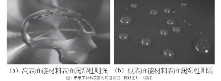 圖1示意了材料表面的潤(rùn)濕狀況(網(wǎng)絡(luò),侵刪)