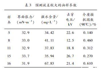 表3預(yù)測誤差較大的油樣參數(shù)