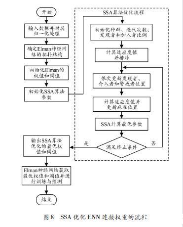 7)將SSA優(yōu)化后得到的最優(yōu)權(quán)值和閾值參數(shù)輸出傳遞至ENN,以最優(yōu)的SSAENN模型訓(xùn)練和預(yù)測數(shù)據(jù)。