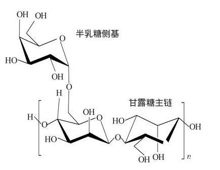 本實(shí)驗(yàn)使用的主要壓裂液稠化劑是羥丙基胍膠,主要原料天然植物瓜爾膠豆胚乳中提取的一種天然高分子,由甘露糖和半乳糖兩種單糖組成的多糖,如圖1。分子主鏈由甘露糖單元通過β-1,4苷鍵連接,側(cè)基的半乳糖通過α-1,6苷鍵連接到分子主鏈上。