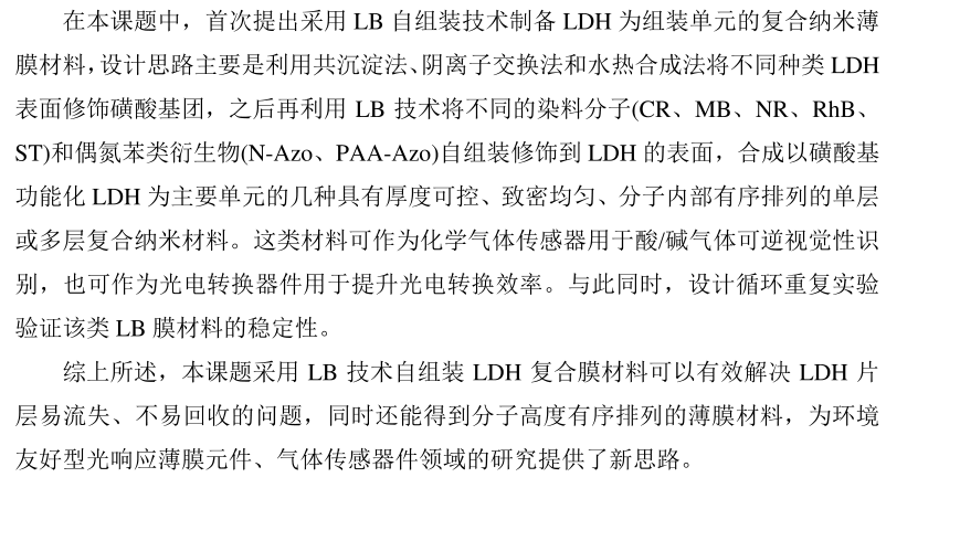 LDH/染料復(fù)合LB膜組裝過程的多樣化和化學(xué)氣體傳感機(jī)理研究