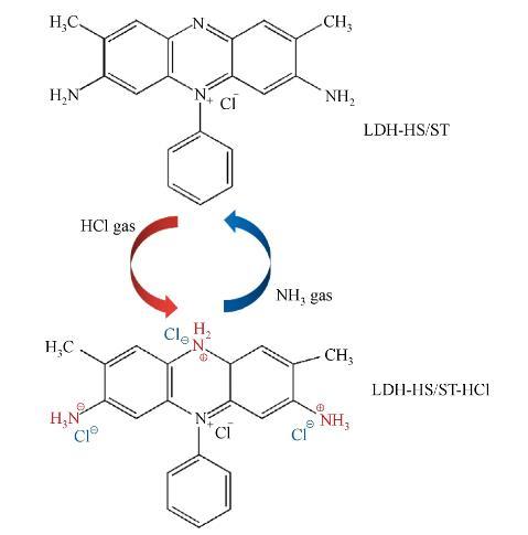 圖5 HCl和NH3氣體對LDH-HS/ST LB復(fù)合膜的化學(xué)反應(yīng)機理