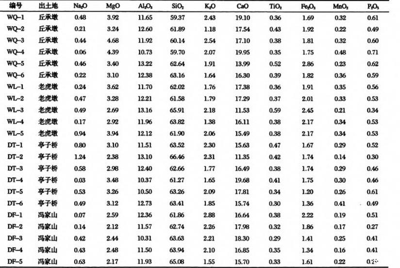 表1無錫鴻山貴族墓、德清窯址出土原始青瓷樣品釉的主、次量元素組成(wt%)