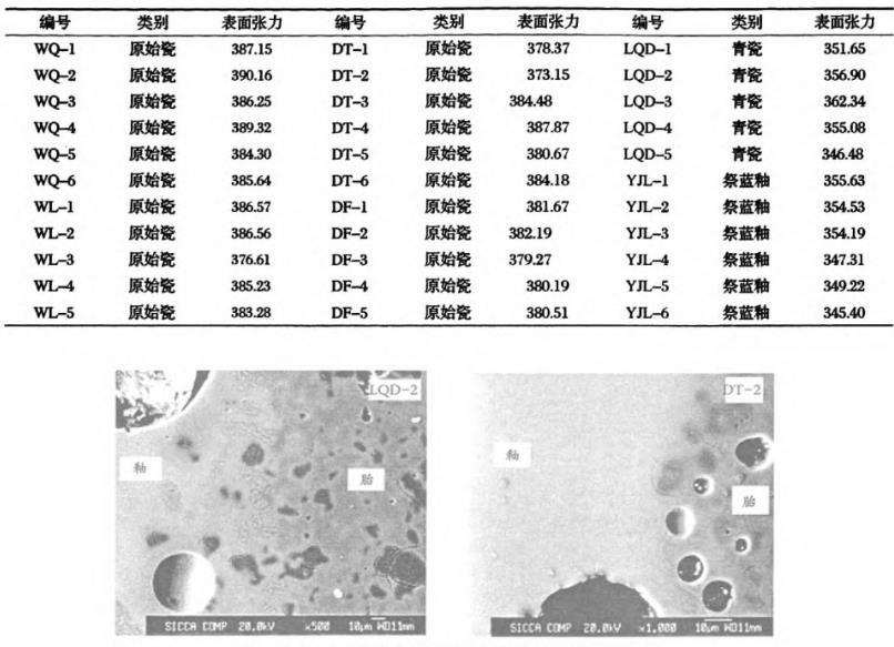 表4原始瓷和成熟瓷器釉在1200℃時的表面張力值(mN/m)