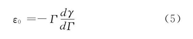 擴(kuò)張彈性全頻率譜上高頻平臺(tái)值稱(chēng)為極限擴(kuò)張彈性(ε0),其物理化學(xué)意義是當(dāng)頻率足夠大、所有界面弛豫過(guò)程均可忽略時(shí)的擴(kuò)張彈性,如式(5)所示。