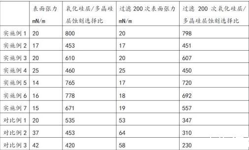 采用上述方法處理完成后,采用芬蘭Kibron公司生產(chǎn)的表面張力儀在室溫下分別對蝕刻液和經(jīng)過0.5μm的濾芯過濾200次后的蝕刻液的表面張力進行測試,測試結(jié)果參見表3。