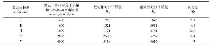 表1 5種表面活性劑的相對(duì)分子質(zhì)量及聚合度(DP)