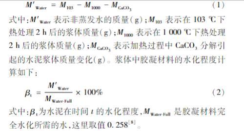 采用TAMAir八通道微量熱儀測(cè)試水泥凈漿96h內(nèi)的水化熱。用非蒸發(fā)水燒失量測(cè)試值來估算水泥的水化程度。