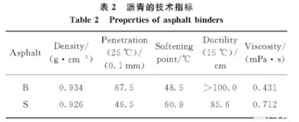 純度1)99.5%的無水乙醇(分析純);70#基質(zhì)瀝青(B);SBS改性瀝青(S);5種表面活性劑:阿科瑪Cecabase 945(W1)、阿科瑪Cecabase Bio 10(W2)、諾力昂Rediset LQ-1102C(W3)、上海龍孚LYE-WMA(W4)、美德維實偉克M-1(W5),表面活性劑W1——W5摻量分別為瀝青質(zhì)量的0.4%、0.4%、0.6%、0.6%、0.6%.瀝青的技術指標見表2,其中:黏度采用布式旋轉黏度法測試,取剪切速率為25s-1時的黏度值;基質(zhì)瀝青、SBS改性瀝青的密度與黏度的測試溫度分別為135、165℃。