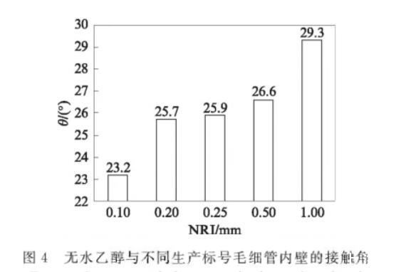 圖4無水乙醇與不同生產(chǎn)標號毛細管內壁的接觸角