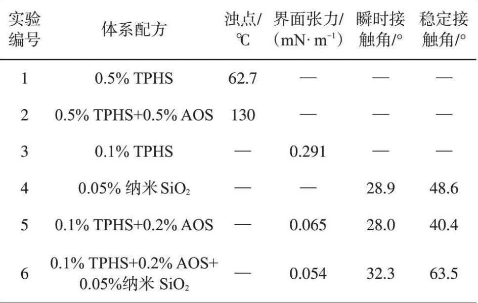 2.4 TPHS復(fù)配體系的界面活性與潤(rùn)濕性