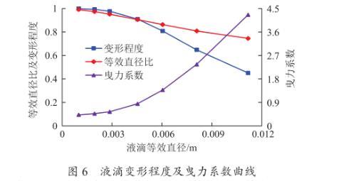 圖6液滴變形程度及曳力系數(shù)曲線
