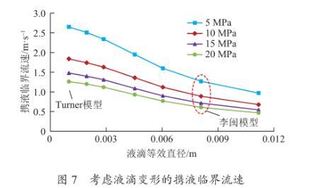 圖7考慮液滴變形的攜液臨界流速