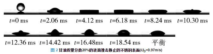 圖2甘油質(zhì)量分?jǐn)?shù)20%的液滴撞擊靜止的不銹鋼表面(UD=0.97m/s)