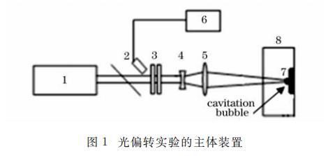 當探測光束通過靶面焦點正前方與空泡或沖擊波相互作用時將產(chǎn)生微小的改變,原光束傳播方向也將發(fā)生偏轉(zhuǎn),因此耦合進光纖傳感器的光強將減小。由于光通量的變化體現(xiàn)為光電流或電壓的變化,因此空泡泡半徑的演變可以從數(shù)字存儲示波器上的電壓變化反映;圖2(b)為探測空泡潰滅對固壁面空蝕作用的實驗裝置。在脈沖激光作用下,靶材作用點的背面將產(chǎn)生微小的錐形突起,因此光束反射時相對原有反射光路要偏轉(zhuǎn)一定的角度。當探測光束照在因激光作用而形成凸起的錐形上,且光斑中心與錐心重合時,反射光束變?yōu)橐画h(huán)形光斑,耦合進光纖的光通量會變小。因光通量的變化體現(xiàn)為光電流或電壓的變化,因此靶材所受力的變化可以從數(shù)字存儲示波器上的電壓變化來反映。該光纖傳感器的相關(guān)測試原理分別見參考文獻。本實驗觸發(fā)信號由光電二極管17(上升時間100ps)獲取激光反射光來實現(xiàn)。