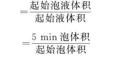 泡沫性能:用振蕩法測定,即室溫(25℃)下,在100 mL具塞量筒中加入30 mL質(zhì)量分數(shù)為0.5%或0.1%的待測溶液,用力振蕩10次,記錄泡沫和液體的總體積。靜置5 min,記錄泡沫體積。發(fā)泡力和穩(wěn)泡性計算公式: