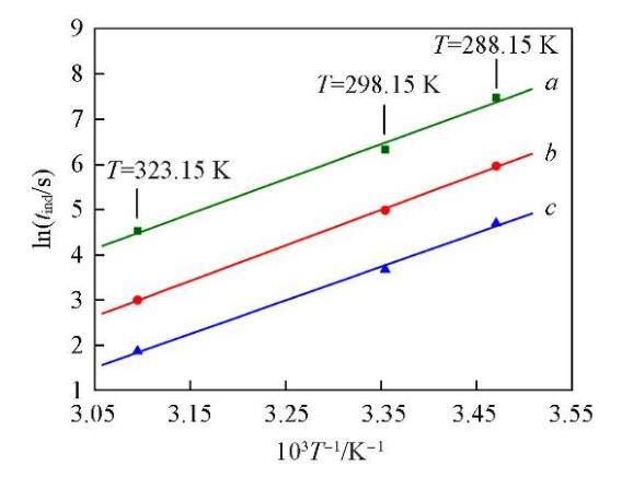 Liu和Nancollas[32]提出了一個反映成核誘導期(tind)與溫度關系的經驗方程式: