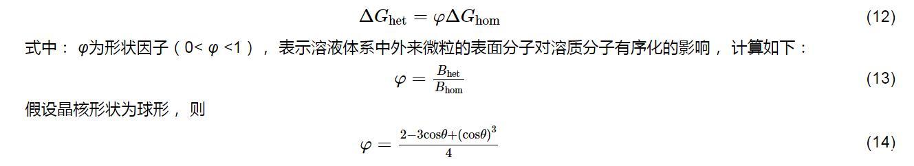 根據(jù)均相成核和非均相成核理論,在非均相成核條件下形成臨界晶核所需自由能的變化(ΔGhet)與均相成核條件下形成臨界晶核所需自由能的變化(ΔGhom)間的關系為