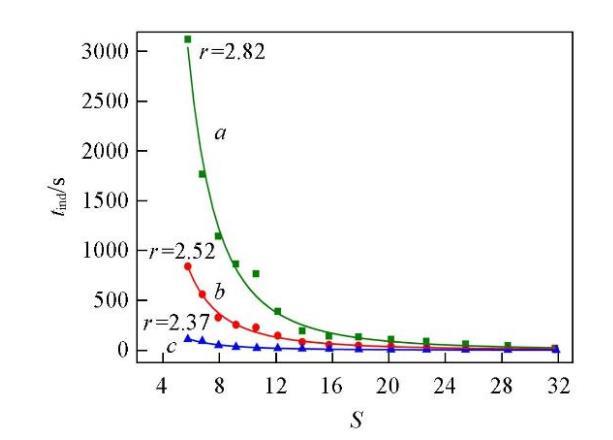 成核誘導期與過飽和度的半經驗關系式[33]如下: