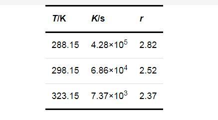 式中:K和r均為方程參數(shù),可由實驗數(shù)據(jù)回歸得出.將圖1的數(shù)據(jù)回歸結果列于表1.進一步說明了過飽和度對成核誘導期的影響在較低的溫度下更為顯著.
