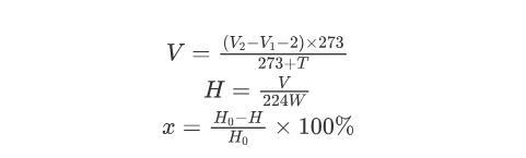 式中:V為在1個標(biāo)準(zhǔn)大氣壓、273 K的條件下生成氫氣的體積,mL;V 1為反應(yīng)前堿式滴定管的讀數(shù),mL;V 2為反應(yīng)后堿式滴定管的讀數(shù),mL;T為反應(yīng)溫度,℃;H為反應(yīng)產(chǎn)物的含氫量,10-2 mol/g;W為樣品質(zhì)量,g;x為MDHM轉(zhuǎn)化率;H 0為反應(yīng)前產(chǎn)物的含氫量,10-2 mol/g。