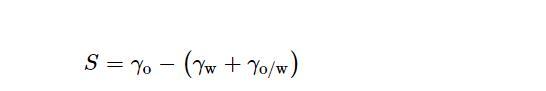 水成膜泡沫滅火劑具有泡沫窒息和液膜覆蓋的協(xié)同滅火效果,其中氟碳表面活性劑能否在燃油表面有效地鋪展,很大程度上影響了燃油火災(zāi)的撲滅效率。研究表明,鋪展系數(shù)是用于評價表面活性劑在油表面能否有效鋪展的重要參數(shù),由下式計算: