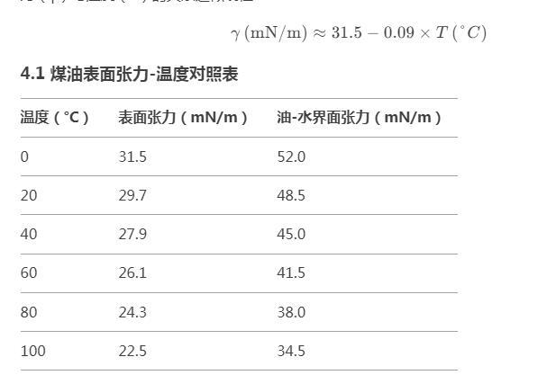煤油的界面張力多少合適,煤油表面張力與溫度對照表