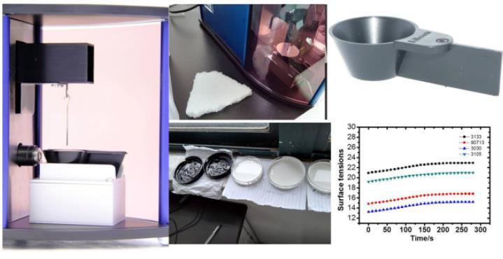 圖1測(cè)量涂料的表面張力裝置實(shí)驗(yàn)圖及涂料樣品的表面張力數(shù)據(jù)