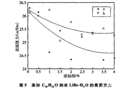 圖4添加C9H 20O納米LiBr-H 2O的表面張力