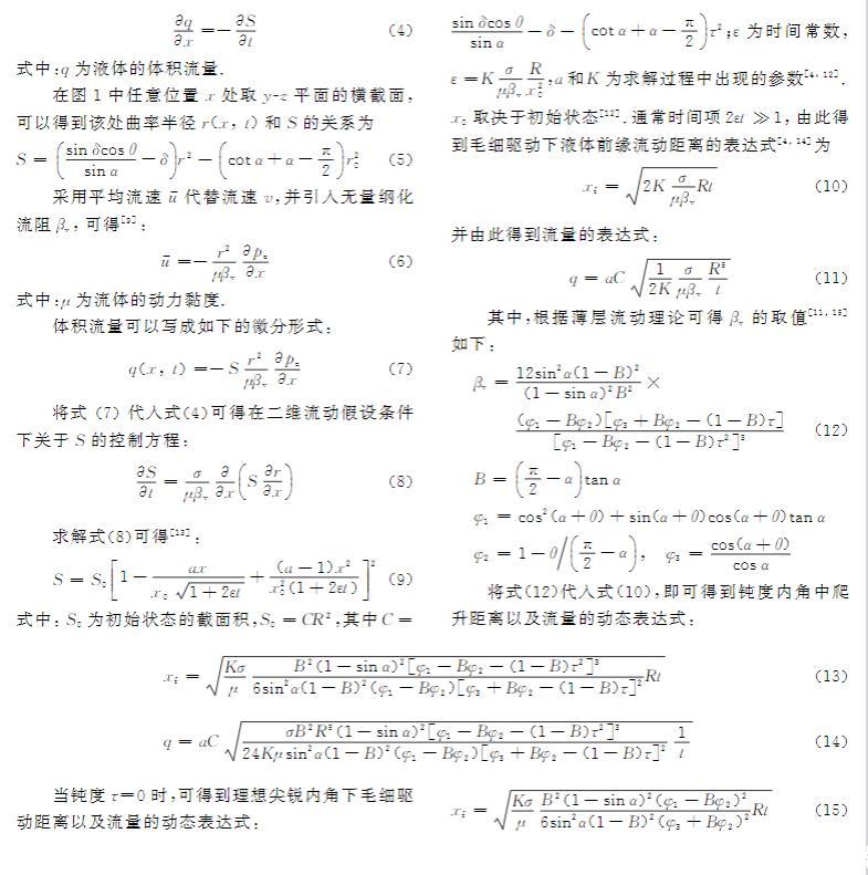 鈍度內(nèi)角中的毛細(xì)力驅(qū)動(dòng)流動(dòng)模型