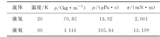 表1液氫與液氧的物性參數(shù)(0.1 MPa)