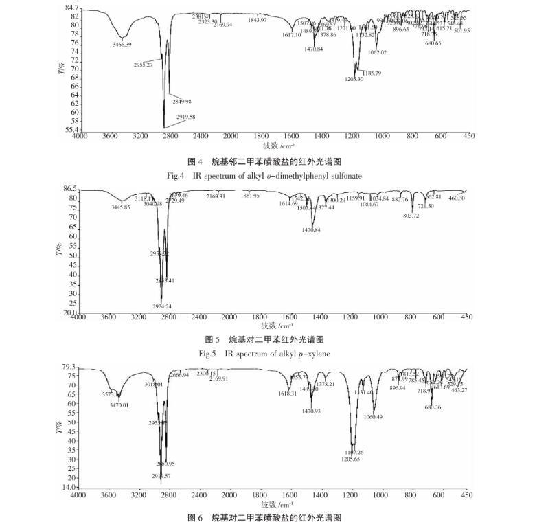 圖6烷基對(duì)二甲苯磺酸鹽的紅外光譜圖