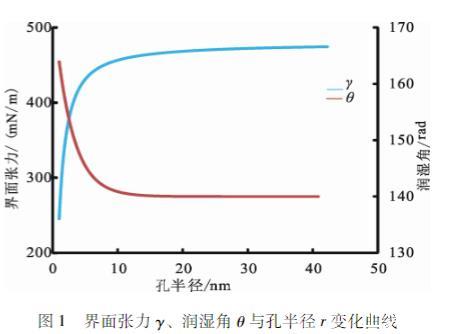 2.3界面張力γ、潤濕角θ與孔半徑r關(guān)系